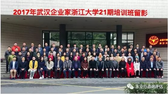 2017年3月21至28日,為期8天的武漢企業(yè)家第21期培訓(xùn)班在浙江大學(xué)舉辦,永業(yè)行投資咨詢事業(yè)部總經(jīng)理文云波、地產(chǎn)顧問事業(yè)部總經(jīng)理郭華以及武漢市各行業(yè)的企業(yè)家共計83名學(xué)員參加了此次培訓(xùn)。