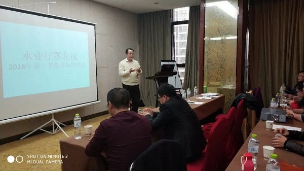 3月23日,永業(yè)行鄂北區(qū)舉辦2018年一季度市場培訓(xùn)會(huì),副總裁劉曉峰、十堰區(qū)域總監(jiān)周小川、襄陽區(qū)域總監(jiān)江水、隨州分公司負(fù)責(zé)人王輝及十堰、襄陽、隨州區(qū)域市場人員參加了培訓(xùn)。