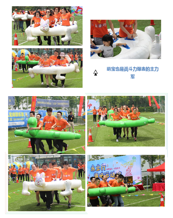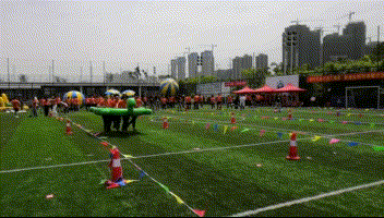 本屆趣味運動會共設(shè)置了6個比賽項目,考驗協(xié)作的蛟龍出海、活潑調(diào)皮的龜兔賽跑、驚險刺激的運轉(zhuǎn)乾坤、奮勇沖刺的障礙接力、齊心協(xié)力的旱地龍舟、拼盡全力的拔河比賽……比賽過程挑戰(zhàn)與趣味并存,不僅鍛煉了團(tuán)隊協(xié)作能力,更是對隊員們體力、耐力的考驗。比賽現(xiàn)場,運動健兒的激烈角逐,激動人心;觀賽團(tuán)隊的吶喊助威,震耳欲聾,大家不顧被烈日曬紅的皮膚、被汗水浸透的衣衫,拼盡全力為團(tuán)隊榮譽(yù)而戰(zhàn),沉浸在運動帶來的激情與快樂中。在沖過終點的瞬間,落后時的相擁鼓勁,勝利后的擊掌慶祝,作為永業(yè)行人的自豪感與榮譽(yù)感油然而生。一輪輪激烈的角逐后,各組隊員由比賽之初時的“矜持”快速發(fā)展成為相擁慶祝的戰(zhàn)友。如果說一場比賽建立不了感情,那么,就來兩場?