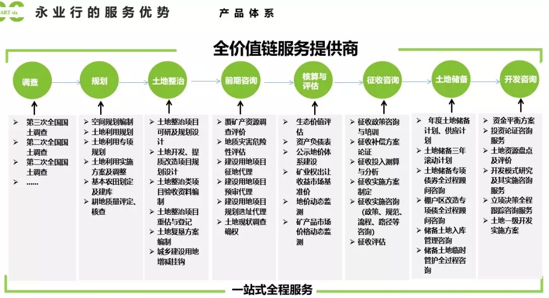 永業(yè)行擁有一支技術(shù)強(qiáng)、專(zhuān)業(yè)精、具有團(tuán)隊(duì)協(xié)作精神的精英團(tuán)隊(duì),專(zhuān)業(yè)涉及自然資源研究、環(huán)境資源、價(jià)值評(píng)估、投資咨詢(xún)等多個(gè)領(lǐng)域,長(zhǎng)期致力于產(chǎn)品研發(fā)創(chuàng)新、技術(shù)轉(zhuǎn)型升級(jí)、成果轉(zhuǎn)化推廣等研發(fā),可提供從土地調(diào)查、規(guī)劃整治、前期咨詢(xún)、核算評(píng)估、征收咨詢(xún)、土地儲(chǔ)備、開(kāi)發(fā)咨詢(xún)等一條龍的全價(jià)值鏈服務(wù)。