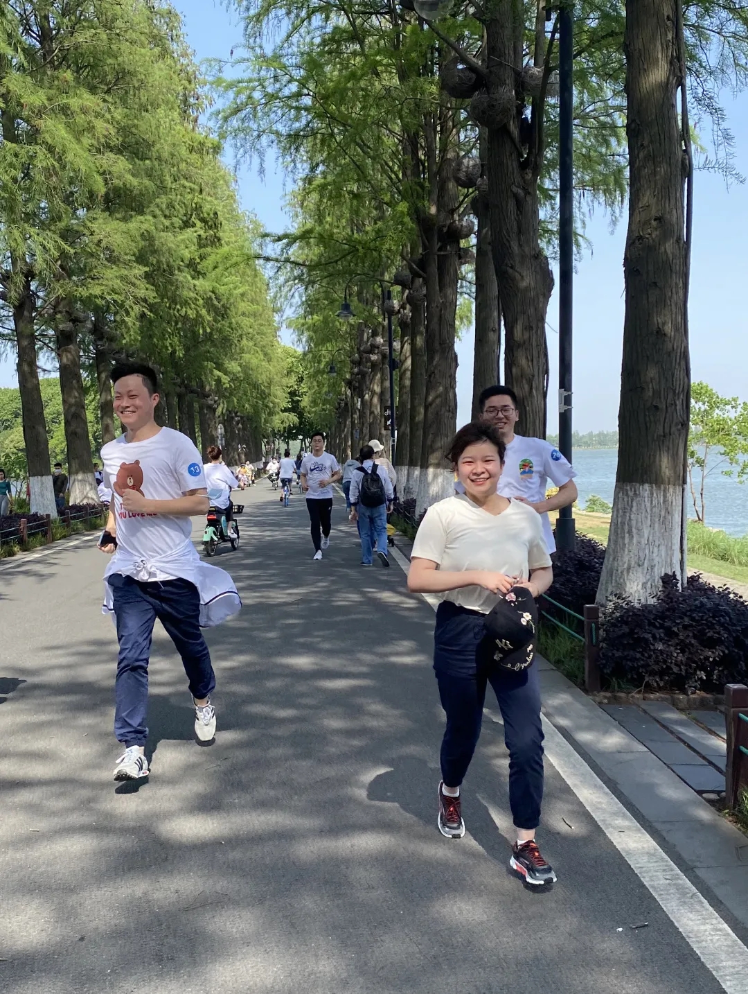 春光正好,目之所及,一片湖光山色。伴著醉人景致,小伙伴們向著5公里外的終點(diǎn)奔赴而去。濕潤的湖風(fēng)帶來絲絲涼意,也為平日忙于工作的人們驅(qū)散了疲憊和壓力。