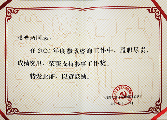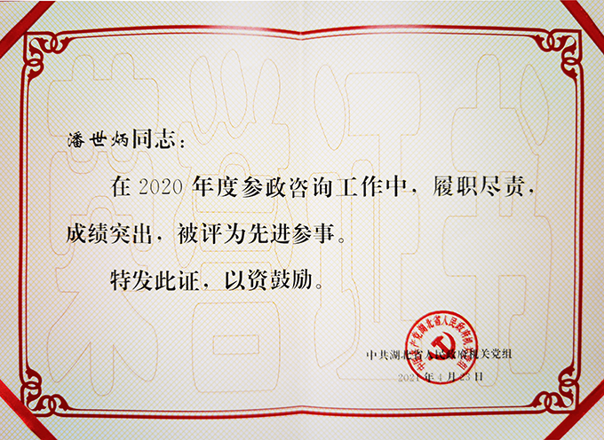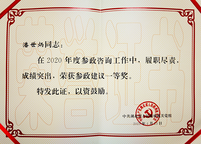 近日,中共湖北省人民政府機(jī)關(guān)黨組發(fā)文,對(duì)2020年度先進(jìn)參事和參事工作單項(xiàng)獎(jiǎng)獲獎(jiǎng)參事進(jìn)行通報(bào),省政府參事、永業(yè)行董事長(zhǎng)潘世炳榮獲先進(jìn)參事、參政建議一等獎(jiǎng)、支持參事工作獎(jiǎng)等多項(xiàng)榮譽(yù)。