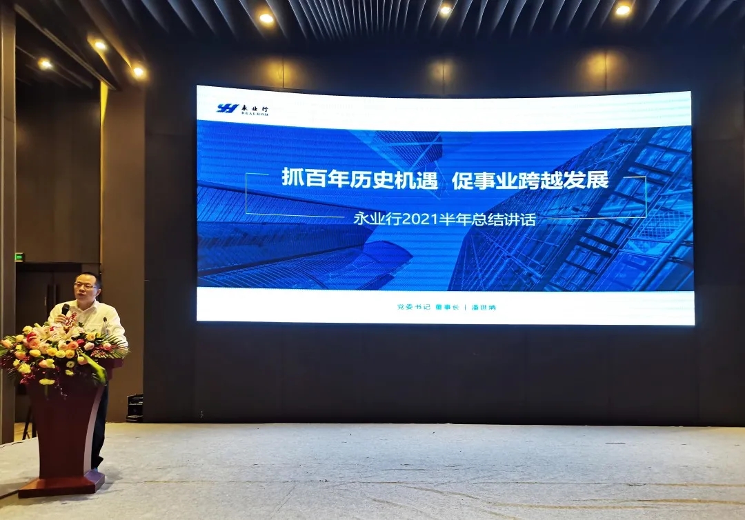 2021年是“十四五”的開局之年,是建黨100周年,是機遇與挑戰(zhàn)并存的一年,更是大有作為的一年。半年來,全體永業(yè)行人立足“五位一體”管理思路和“三年行動計劃”發(fā)展戰(zhàn)略,持續(xù)開展業(yè)務(wù)創(chuàng)新、管理創(chuàng)新、結(jié)構(gòu)創(chuàng)新,實現(xiàn)了經(jīng)營業(yè)績的穩(wěn)健增長。會上,各高管、部門負責人及班子成員代表依次對上半年各項工作進行匯報,通過數(shù)據(jù)、圖表等直觀方式呈現(xiàn)團隊的工作點滴,展示亮點的同時也總結(jié)經(jīng)驗、反思不足、合理計劃,為后續(xù)工作指明方向。
