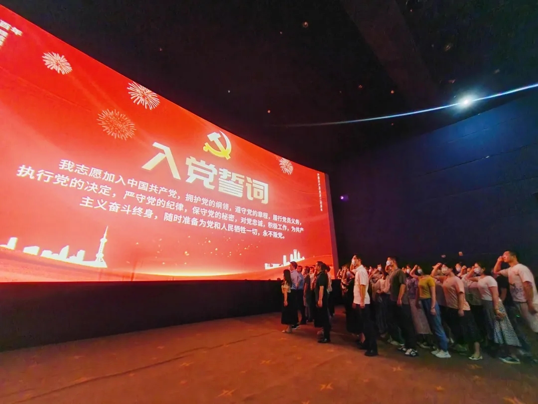 伴隨著激蕩澎湃的心潮,由黨員代表領(lǐng)誓、全體觀影人員進(jìn)行集體宣誓,一張張朝氣蓬勃的面孔,一聲聲充滿斗志的誓言,讓每個(gè)人都接受了一次深刻的精神洗禮,感受著信仰的力量。