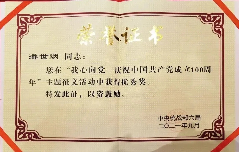 1月21日上午,湖北省政協(xié)十二屆五次會(huì)議舉行全體會(huì)議。省政協(xié)從全省20000余名各級(jí)政協(xié)委員中,評(píng)選出100名省優(yōu)秀政協(xié)委員,其中10名優(yōu)秀政協(xié)委員代表在大會(huì)現(xiàn)場(chǎng)予以表彰。省政協(xié)黨組書(shū)記孫偉為獲表彰委員頒獎(jiǎng)。省政協(xié)委員、永業(yè)行董事長(zhǎng)作為省優(yōu)秀政協(xié)委員代表上臺(tái)領(lǐng)獎(jiǎng)。此為潘世炳連續(xù)三屆(第十、十一、十二屆)獲評(píng)“湖北省優(yōu)秀政協(xié)委員”榮譽(yù)稱號(hào)。