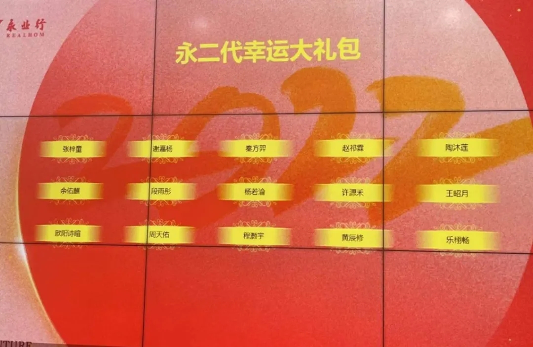 “永二代”代表著關(guān)愛、傳承與希望。永業(yè)行一直以來十分重視和關(guān)愛每一位員工的家庭幸福生活,特別是“永二代”的成長(zhǎng)情況。聯(lián)歡活動(dòng)中,董事長(zhǎng)潘世炳抽取了“永二代”幸運(yùn)大禮包,為100名永業(yè)行寶寶們送上了新年的祝福。伴隨著永二代幸運(yùn)大禮包得主們的誕生,“永二代”活動(dòng)室建設(shè)方案也正式啟動(dòng)。