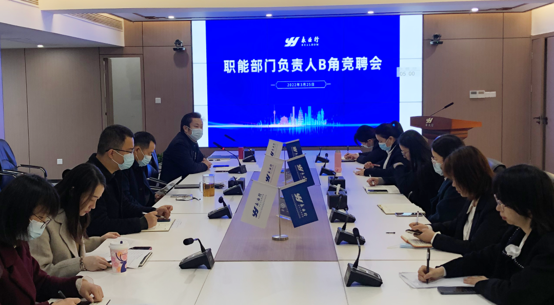 2022年3月25日,永業(yè)行舉辦總部職能部門負(fù)責(zé)人B角競聘會(huì)。黨委書記、董事長潘世炳作為評(píng)委參加會(huì)議。會(huì)議由副總裁程為民主持。