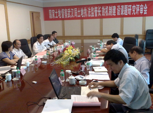 該課題評(píng)審會(huì)在武漢市濱湖大廈召開。參加評(píng)審的領(lǐng)導(dǎo)和專家還有國(guó)家土地督察武漢局局長(zhǎng)王廣華,副局長(zhǎng)唐世力,調(diào)研處處長(zhǎng)石一連、調(diào)研員陳漢江、主任科員劉金華;省國(guó)土資源廳黨組成員執(zhí)法監(jiān)察總隊(duì)總隊(duì)長(zhǎng)李維學(xué)、執(zhí)法監(jiān)察處處長(zhǎng)萬壽雄、副調(diào)研員吳鄂陽(yáng);湖北省土地勘測(cè)規(guī)劃院院長(zhǎng)張安心;荊州市國(guó)土資源局副局長(zhǎng)胡明清;華中農(nóng)業(yè)大學(xué)王秀蘭副教授等。