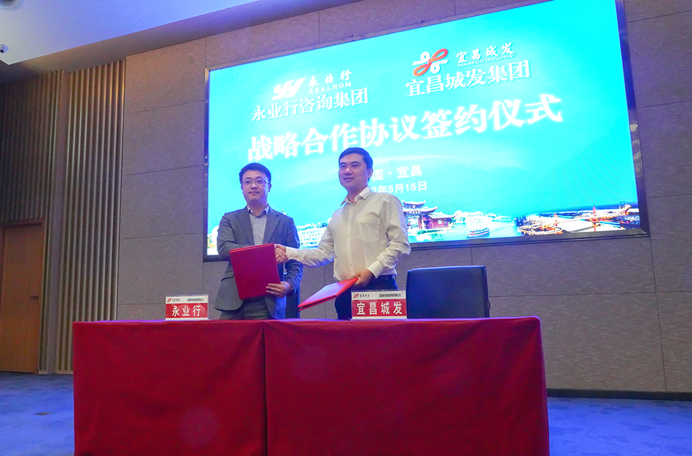 2022年5月15日,永業(yè)行集團(tuán)與宜昌城發(fā)集團(tuán)在宜昌舉行戰(zhàn)略合作協(xié)議簽約儀式。宜昌城發(fā)集團(tuán)黨委書記、董事長殷俊,黨委副書記、總經(jīng)理徐強(qiáng),黨委委員、紀(jì)委書記劉仁,永業(yè)行副總裁文云波,投資咨詢事業(yè)群全過程咨詢事業(yè)部總經(jīng)理?xiàng)铠P等出席簽約儀式。