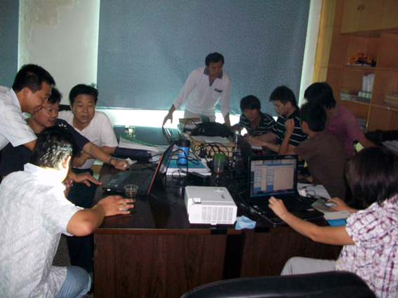 培訓過程中,熊工特別強調了在項目運作過程中按照礦業(yè)權實地核查方案進行野外實測的重要性和必要性,并示范了采礦權實地核查記錄表、對照表的填寫方法。吳工詳細講解了包括MapGIS北京54坐標系轉換西安80坐標、AutoCAD圖轉MapGIS制作及誤差校正、MapGIS轉ArcGIS shp格式等建立數據庫的技術要點。黃岡分部地礦部全體員工對建立數據庫的操作方法進行了演練,并結合熊工、吳工的講解內容和日常工作中遇到的技術難題展開了交流、討論。
