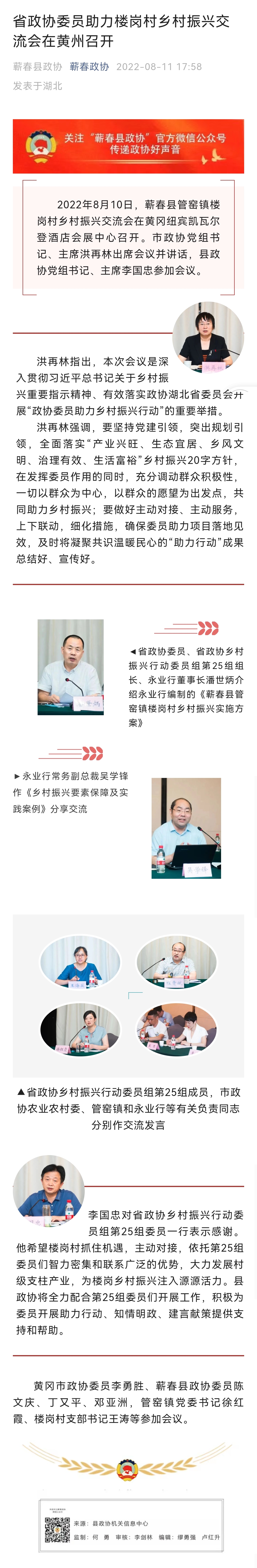 蘄春縣政協(xié)公眾號:省政協(xié)委員助力樓崗村鄉(xiāng)村振興交流會在黃州召開