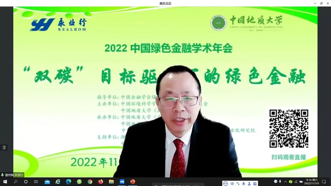 本次大會(huì)由中國(guó)金融學(xué)會(huì)綠色金融專(zhuān)業(yè)委員會(huì)指導(dǎo),中國(guó)環(huán)境科學(xué)學(xué)會(huì)綠色金融專(zhuān)業(yè)委員會(huì)、中國(guó)地質(zhì)大學(xué)(武漢)主辦,永業(yè)行等單位支持,來(lái)自全國(guó)高校、研究機(jī)構(gòu)及相關(guān)企業(yè)的專(zhuān)家、學(xué)者共聚一堂,通過(guò)線(xiàn)上線(xiàn)下“雙互動(dòng)”的模式,圍繞當(dāng)前雙碳目標(biāo)驅(qū)動(dòng)下綠色金融領(lǐng)域的重點(diǎn)理論和實(shí)踐問(wèn)題展開(kāi)熱烈而深入的探討。會(huì)議通過(guò)網(wǎng)絡(luò)平臺(tái)全程直播。