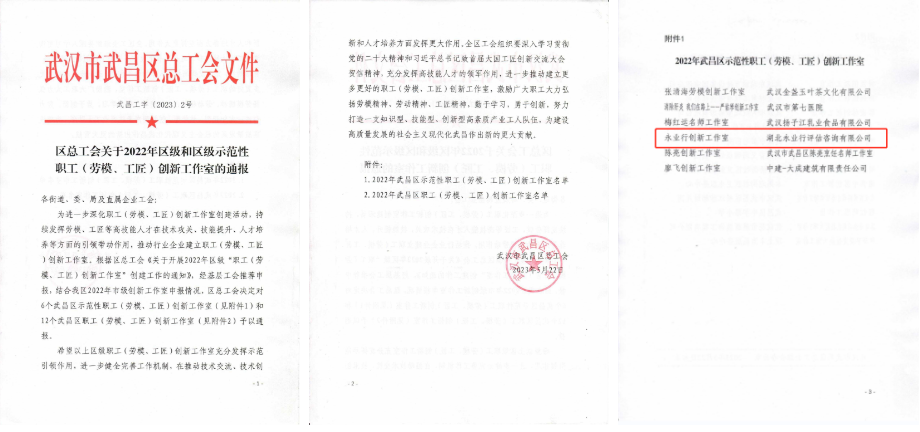 近日,武漢市武昌區(qū)總工會(huì)發(fā)布《區(qū)總工會(huì)關(guān)于2022年區(qū)級(jí)和區(qū)級(jí)示范性職工(勞模、工匠)創(chuàng)新工作室的通報(bào)》(武昌工字〔2023〕2號(hào)),永業(yè)行獲評(píng)“2022年武昌區(qū)示范性職工(勞模、工匠)創(chuàng)新工作室”。