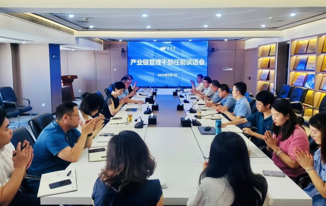2023年9月1日,永業(yè)行組織召開(kāi)產(chǎn)業(yè)鏈管理干部任前談話會(huì),公司黨委書(shū)記、董事長(zhǎng)潘世炳,常務(wù)副總裁吳學(xué)鋒,聯(lián)席總裁王琴及相關(guān)高管,組織人事部總經(jīng)理李斯,35名擬任干部通過(guò)線上或線下的形式出席會(huì)議。