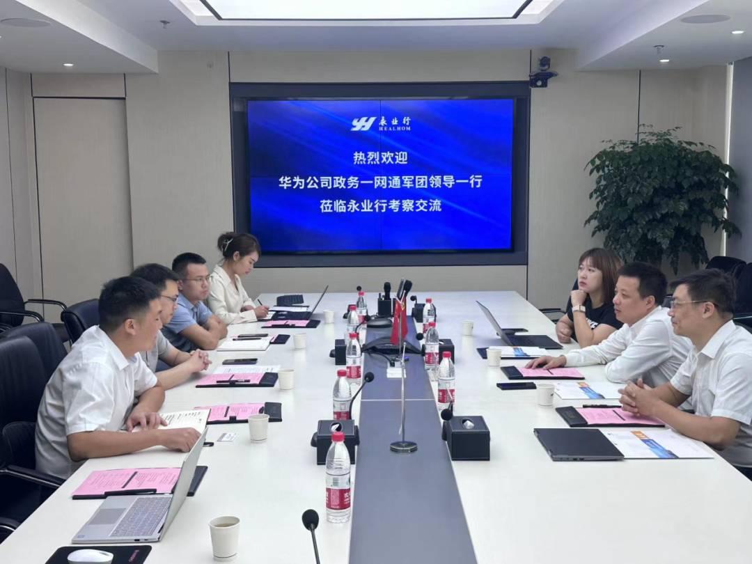 2023年9月7日,華為公司政務(wù)一網(wǎng)通軍團副總裁劉勇一行赴永業(yè)行交流座談。永業(yè)??級副總裁、投資?融產(chǎn)業(yè)鏈執(zhí)?董事兼董事總經(jīng)理文云波熱情接待,雙方開展了充分的業(yè)務(wù)交流。