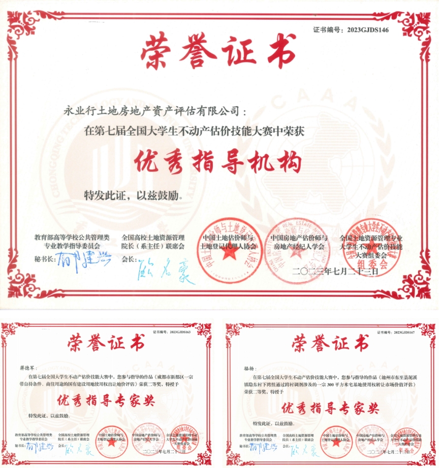 近日,第七屆全國(guó)大學(xué)生不動(dòng)產(chǎn)估價(jià)技能大賽決賽在重慶工商大學(xué)圓滿落幕,永業(yè)行被評(píng)為優(yōu)秀指導(dǎo)機(jī)構(gòu),其指導(dǎo)的兩支參賽隊(duì)伍均獲得二等獎(jiǎng),永業(yè)行評(píng)估咨詢產(chǎn)業(yè)鏈總經(jīng)理蔣德軍、資源評(píng)估技術(shù)副總監(jiān)駱楊受邀參會(huì)并獲評(píng)優(yōu)秀指導(dǎo)專家。