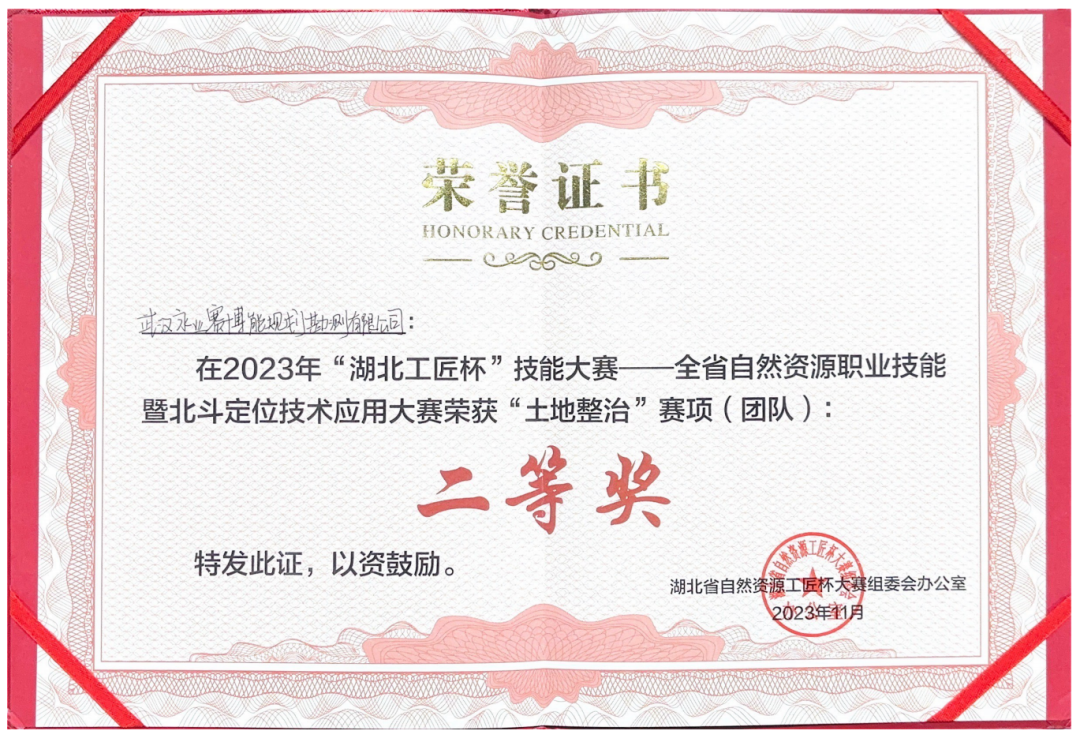 2023年“湖北工匠杯”技能大賽--全省自然資源職業(yè)技能暨北斗定位技術(shù)應(yīng)用大賽“土地整治”賽項二等獎