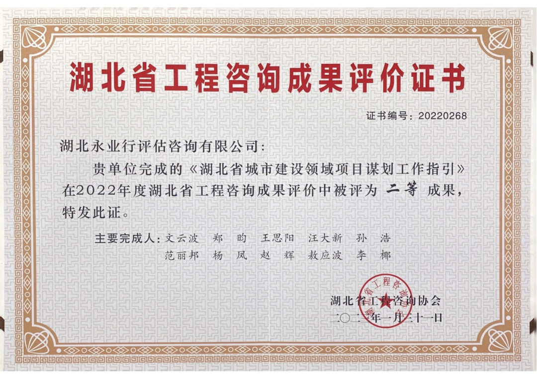湖北省工程咨詢優(yōu)秀成果二等獎