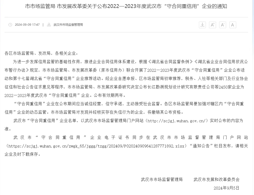 近日,武漢市市場(chǎng)監(jiān)管局、市發(fā)展改革公布了2022—2023年度武漢市“守合同重信用”企業(yè)名單。永業(yè)行旗下多家公司榜上有名,連續(xù)十三年獲評(píng)武漢市“守合同重信用企業(yè)”。