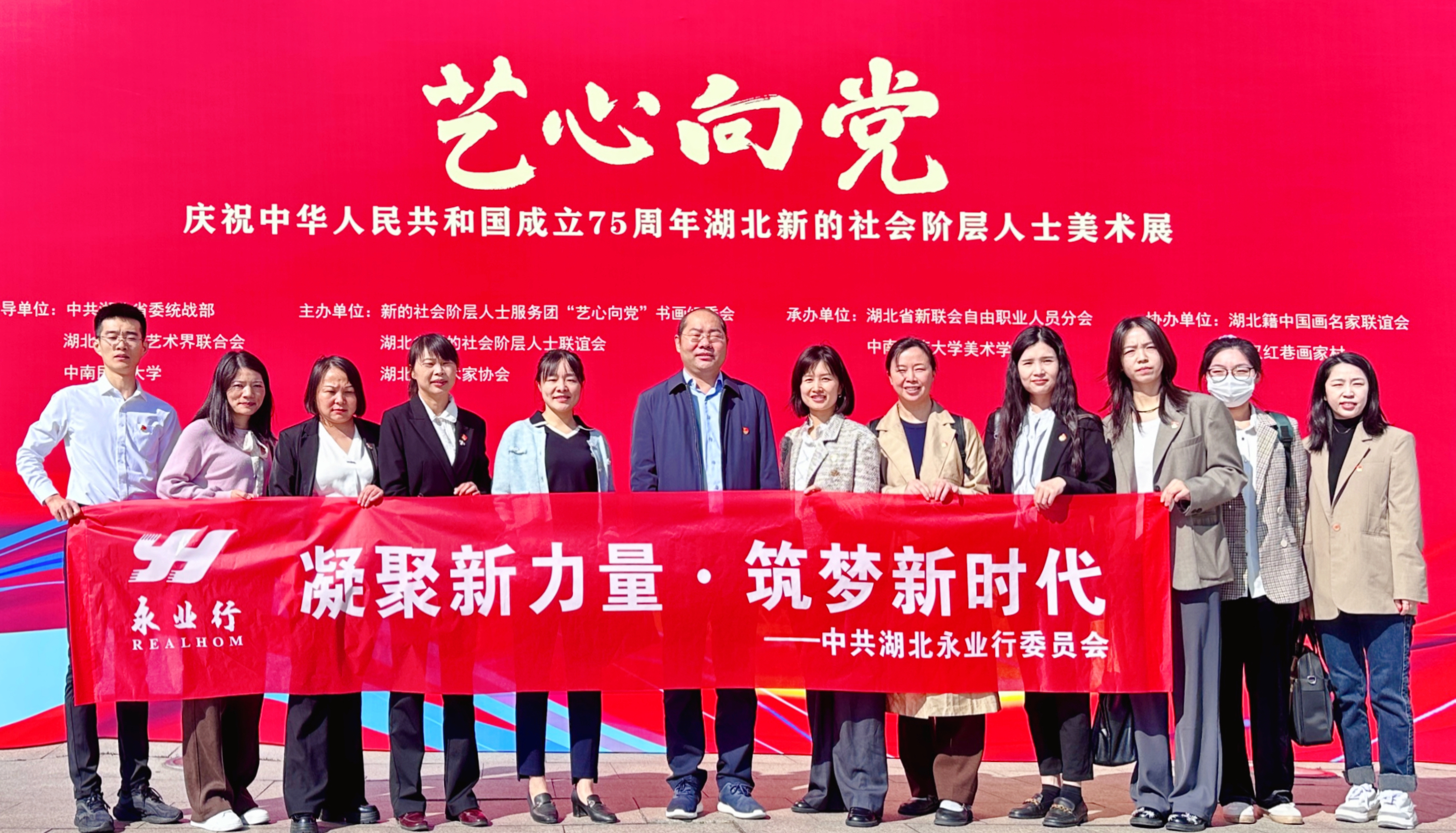 2024年10月25日,中共湖北永業(yè)行委員會(huì)組織開(kāi)展2024年第四季度“凝聚新力量·筑夢(mèng)新時(shí)代”主題教育活動(dòng),赴中南民族大學(xué)參觀“藝心向黨”——慶祝中華人民共和國(guó)成立75周年湖北新的社會(huì)階層人士美術(shù)展。展會(huì)由中共湖北省委統(tǒng)戰(zhàn)部、湖北省文學(xué)藝術(shù)界聯(lián)合會(huì)、中南民族大學(xué)指導(dǎo),新的社會(huì)階層人士服務(wù)團(tuán)“藝心向黨”書(shū)畫(huà)組委會(huì)、湖北省新的社會(huì)階層人士聯(lián)誼會(huì)、湖北省美術(shù)家協(xié)會(huì)共同舉辦。受永業(yè)行黨委書(shū)記、董事長(zhǎng)潘世炳委托,黨委委員、常務(wù)副總裁吳學(xué)鋒帶領(lǐng)各支部書(shū)記、黨員代表參加活動(dòng)。