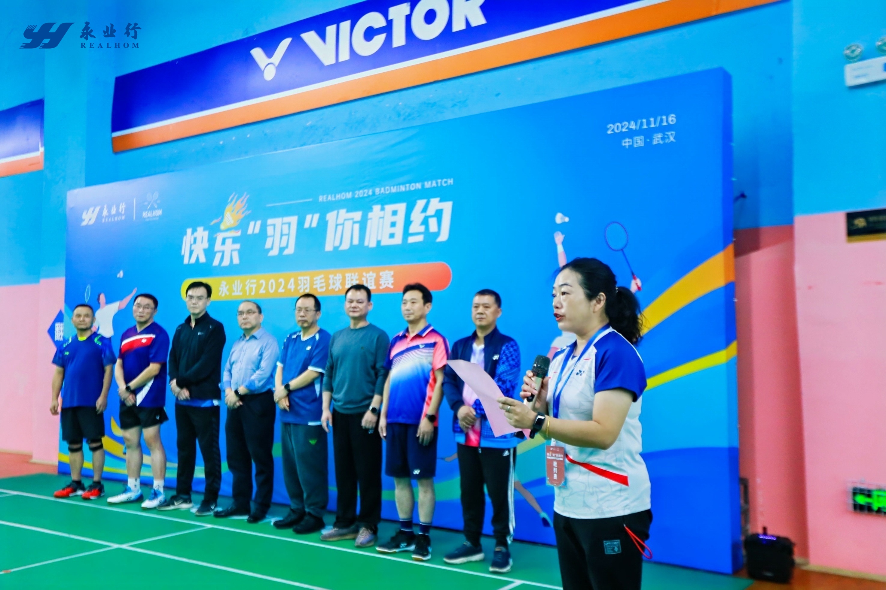 武昌區(qū)人大常委會主任胡太榮,區(qū)委常委、區(qū)政法委書記黃豐宙 ,區(qū)政協(xié)副主席陳烈,永業(yè)行董事長潘世炳等出席開幕式并講話。16支激情洋溢、活力滿滿、火力全開的代表隊,160余名羽毛球愛好者歡樂聚首,互搓球技、強身健體,共敘情誼、凝聚力量。