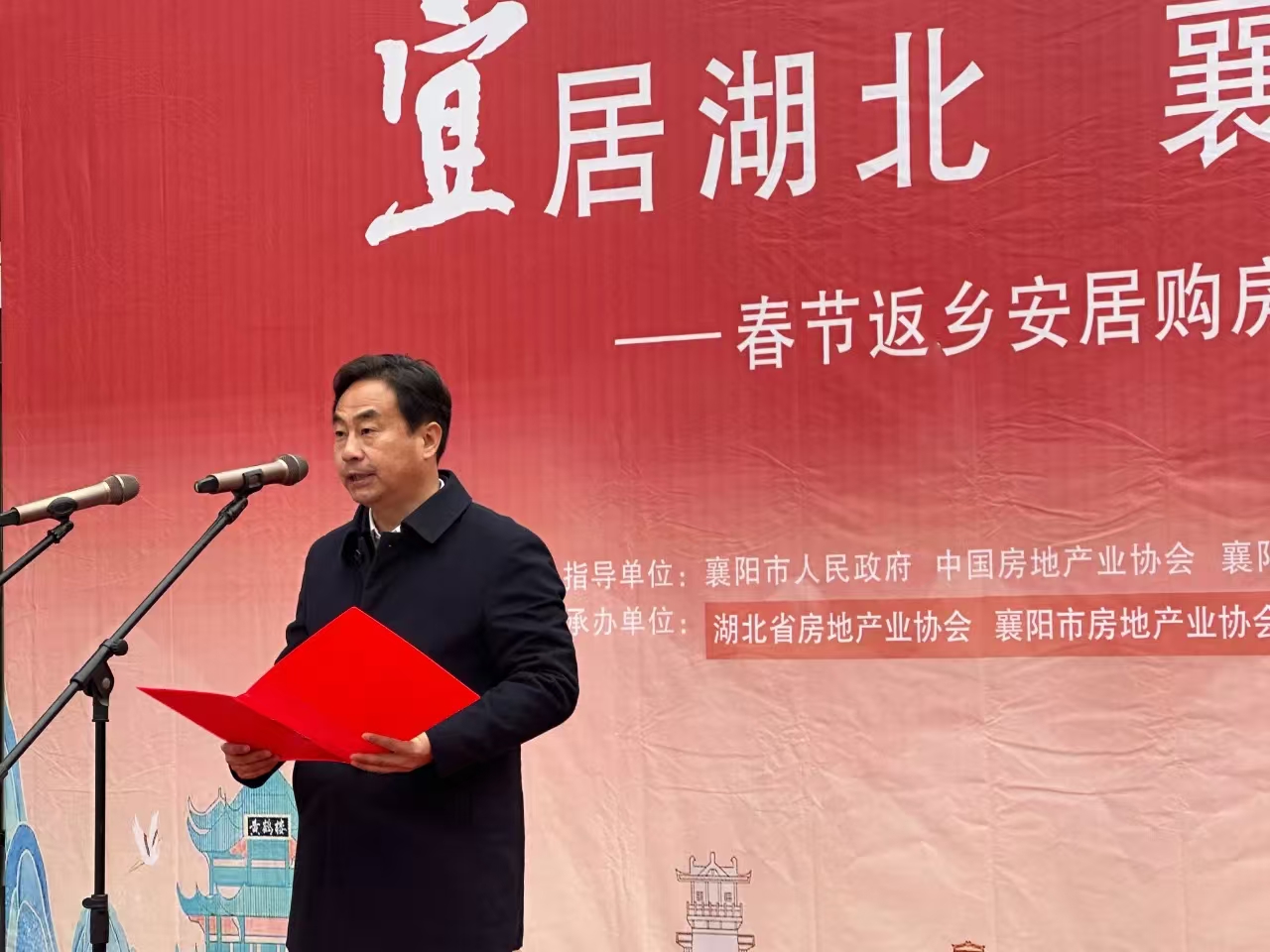 2025年1月4日,襄陽2025“宜居湖北 襄陽安家”春節(jié)返鄉(xiāng)安居購房季活動(dòng)啟動(dòng)儀式在襄水街舉行。襄陽市政府副市長、黨組成員付勁松,省住房和城鄉(xiāng)建設(shè)廳住房保障中心主任阮斌出席活動(dòng)并致辭,省住建廳房地產(chǎn)市場監(jiān)管處處長李劍、副處長李克菲,省房地產(chǎn)業(yè)協(xié)會(huì)秘書長盛婷,襄陽市住新局黨組書記、局長陳建斌,市住新局黨組成員、副局長常海濤等參加活動(dòng),市政府副秘書長許曉林主持活動(dòng)。省房地產(chǎn)業(yè)協(xié)會(huì)會(huì)長、永業(yè)行董事長潘世炳出席活動(dòng)并致辭。