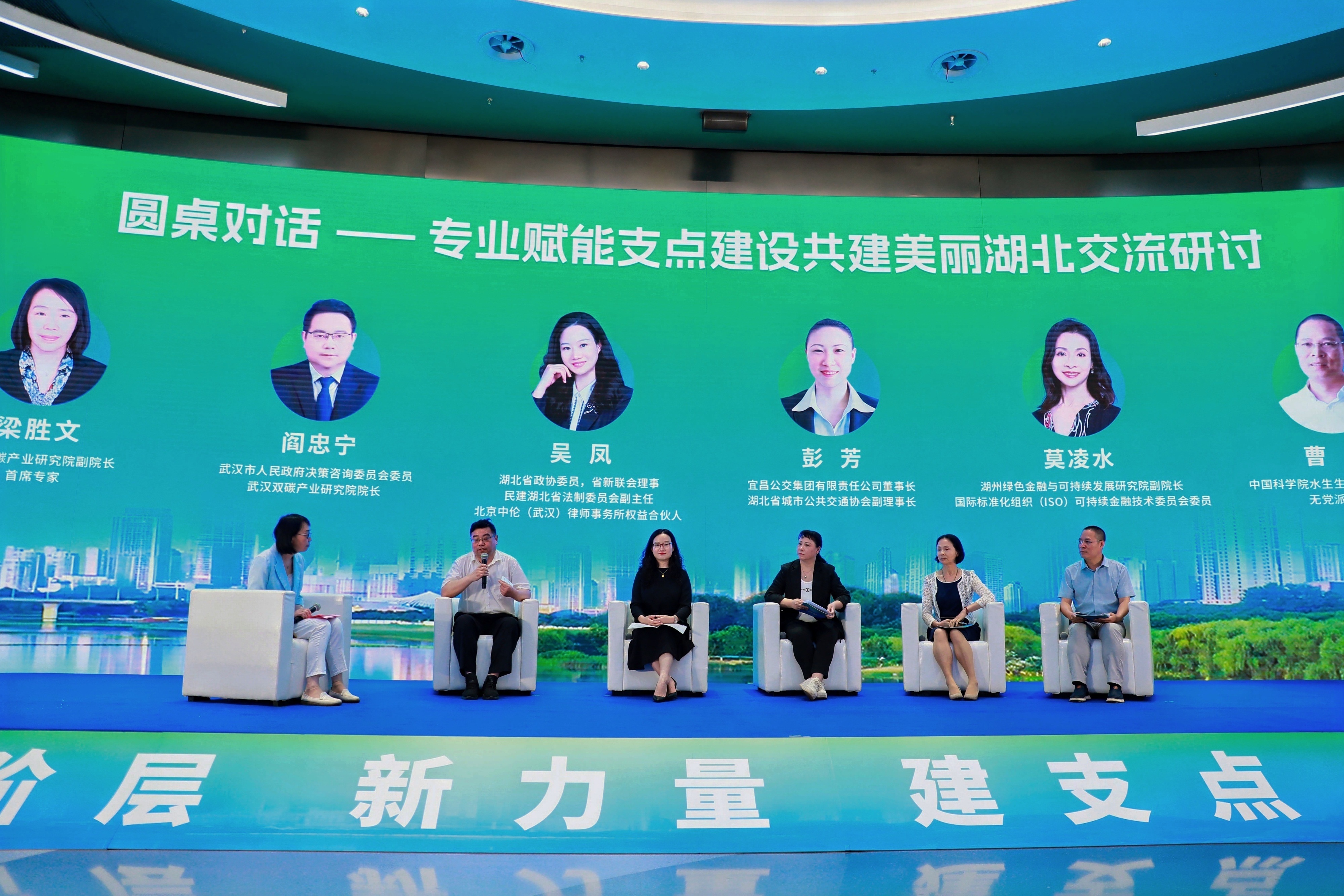 武漢雙碳產(chǎn)業(yè)研究院副院長(zhǎng)、首席專家梁勝文主持本環(huán)節(jié)。會(huì)議邀請(qǐng)武漢市人民政府決策咨詢委員會(huì)委員,武漢雙碳產(chǎn)業(yè)研究院院長(zhǎng)閻忠寧;湖北省政協(xié)委員,省新聯(lián)會(huì)理事,民建湖北省法制委員會(huì)副主任,北京中倫(武漢)律師事務(wù)所權(quán)益合伙人吳鳳;宜昌公交集團(tuán)有限責(zé)任公司董事長(zhǎng),湖北省城市公共交通協(xié)會(huì)副理事長(zhǎng)彭芳;湖州綠色金融與可持續(xù)發(fā)展研究院副院長(zhǎng),國(guó)際標(biāo)準(zhǔn)化組織(ISO)可持續(xù)金融技術(shù)委員會(huì)委員莫凌水;中國(guó)科學(xué)院水生生物研究所研究員,無黨派人士曹特等五位專家參加圓桌對(duì)話,圍繞新階層專業(yè)賦能支點(diǎn)建設(shè)共建美麗湖北交流研討。