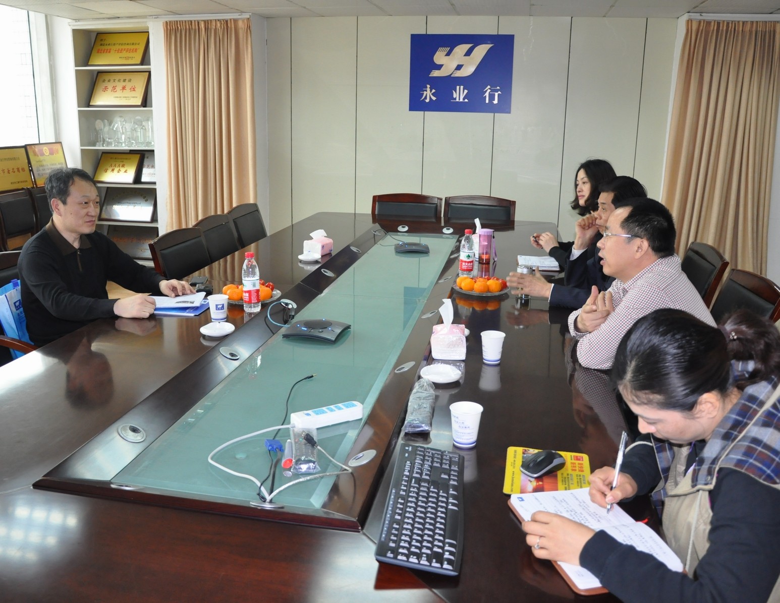 公司董事長方國成、總裁潘世炳、副總裁王琴、綜合部負(fù)責(zé)人楊雪蓮等熱情接待了孫編委。潘總介紹了公司基本概況、發(fā)展思路及規(guī)范管理措施等;孫編委對(duì)永業(yè)行的發(fā)展現(xiàn)狀及管理模式等予以了充分肯定,并對(duì)永業(yè)行的發(fā)展前景寄予期望;大家就有關(guān)行業(yè)發(fā)展問題進(jìn)行了交流、探討。