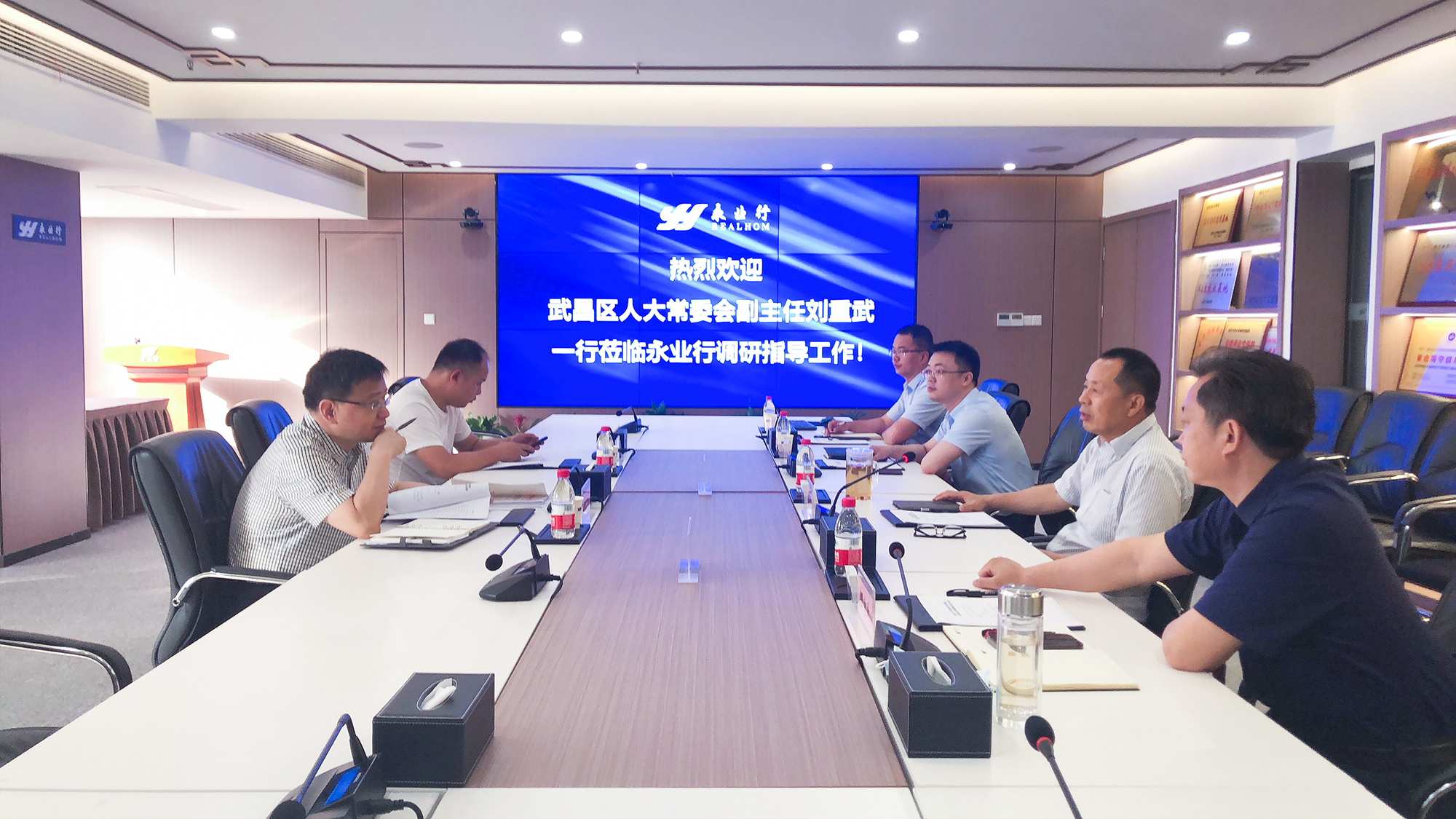 2022年6月7日,武昌區(qū)人大常委會副主任劉重武一行蒞臨永業(yè)行,就企業(yè)紓困解難、惠企政策落實進行走訪調(diào)研,認真聽取企業(yè)訴求和意見建議。省政協(xié)委員、永業(yè)行董事長潘世炳熱情接待并與調(diào)研組座談交流。