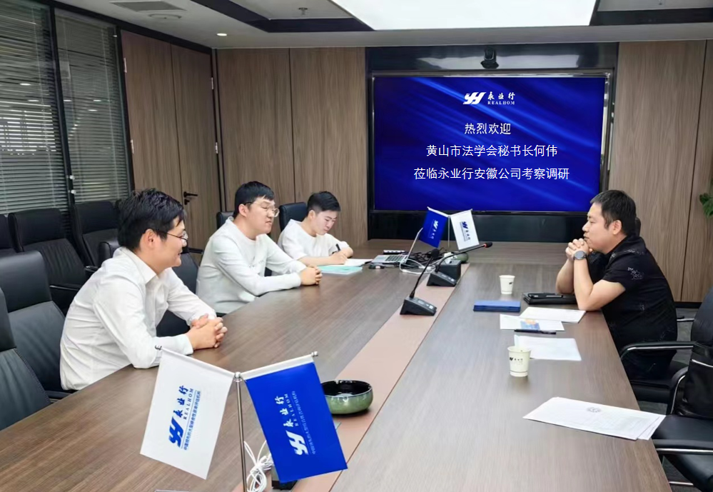 5月22日下午,黃山市法學(xué)會(huì)理事會(huì)秘書長(zhǎng)何偉蒞臨永業(yè)行安徽公司(以下簡(jiǎn)稱“安徽公司”)考察調(diào)研,安徽公司總經(jīng)理徐山柱熱情接待并參與座談交流。