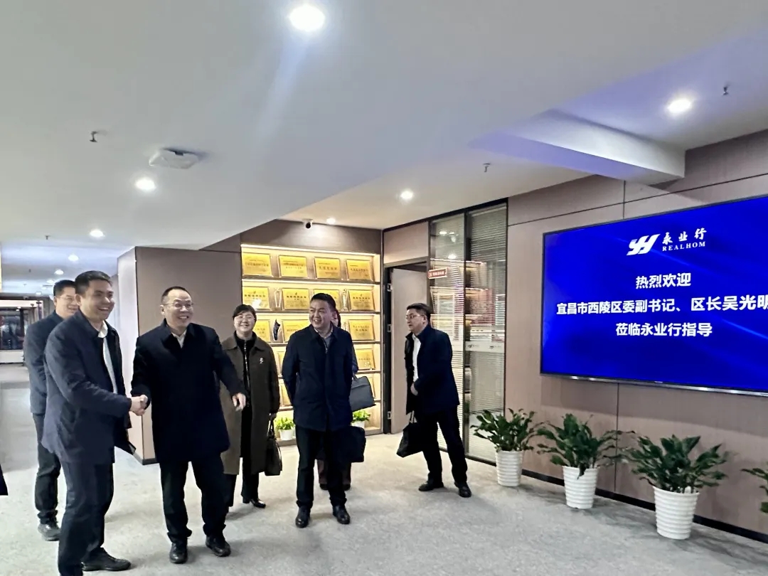 2025年2月24日,宜昌市西陵區(qū)委副書記、區(qū)長吳光明,區(qū)委常委、區(qū)政府常務副區(qū)長覃濤,區(qū)政府副區(qū)長兼夜明珠街道黨工委書記涂超一行蒞臨永業(yè)行考察指導工作。永業(yè)行黨委書記、董事長潘世炳,常務副總裁吳學鋒,副總裁兼鄂西區(qū)總經(jīng)理雷小明等熱情接待并參加座談交流。