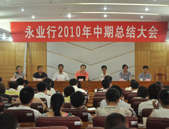7月17日,永業(yè)行2010年中期總結(jié)會在消防招待所召開,永業(yè)行助理總經(jīng)理及碩士、博士和高級職稱以上人員100余人參加了本次總結(jié)會。