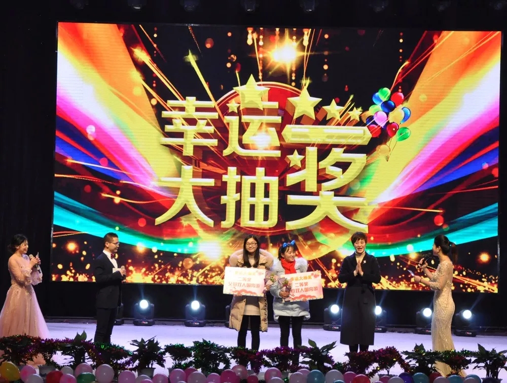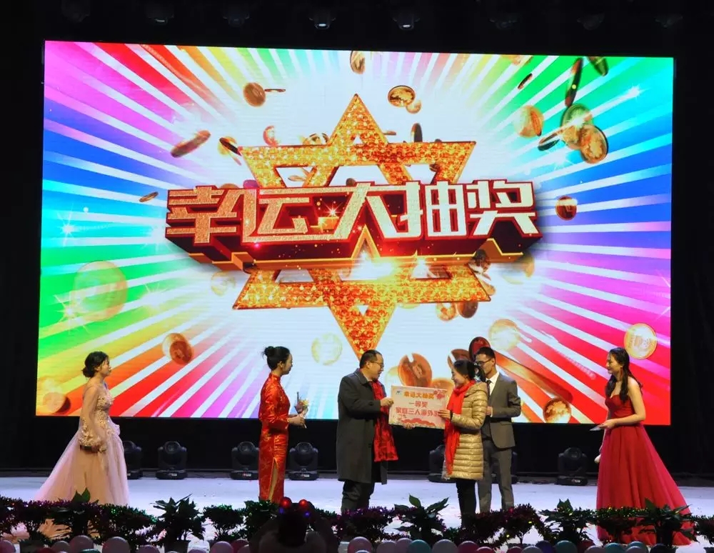 年會(huì)里除了精彩紛呈的節(jié)目,當(dāng)然更少不了幸運(yùn)大抽獎(jiǎng)和微信搶紅包!便攜臺(tái)燈、按摩儀、年貨大禮包、微波爐、感恩父母旅游大獎(jiǎng)接連誕生,歡呼聲連連。