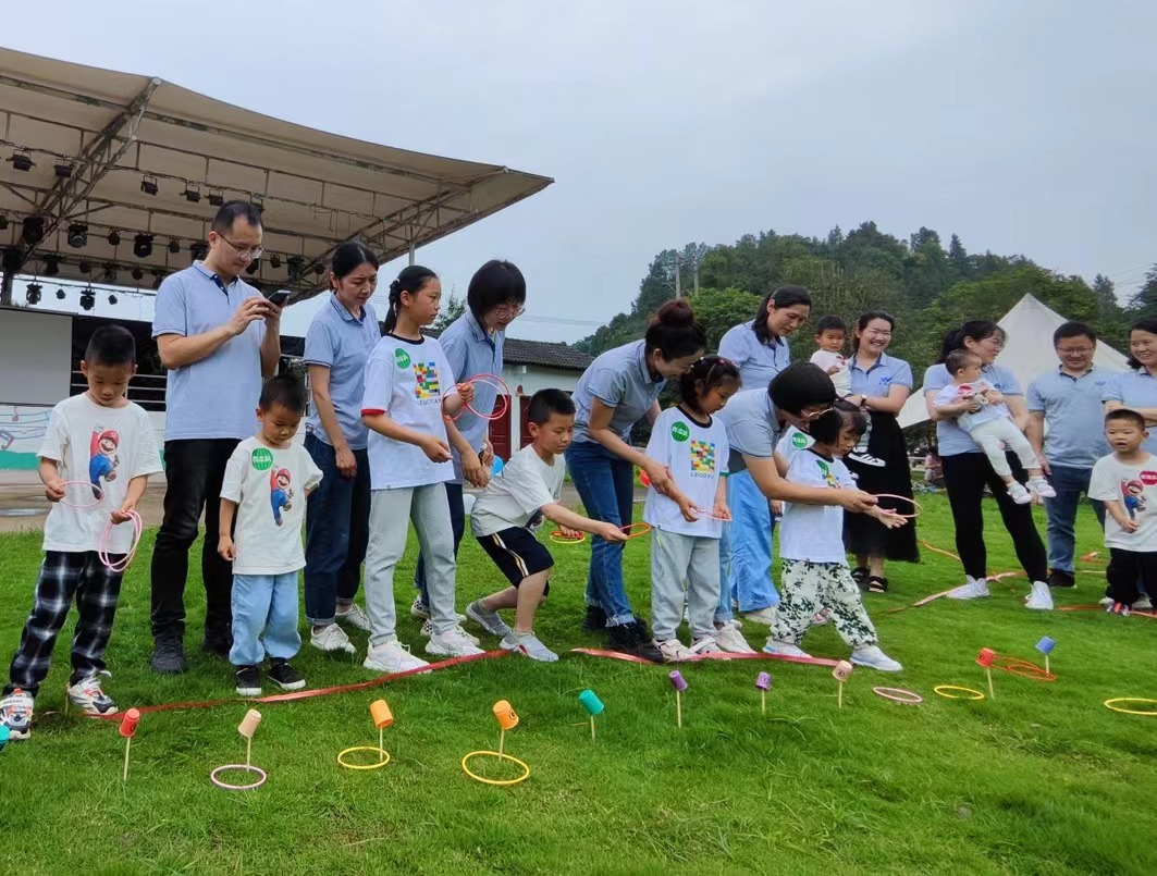 活動伊始,永業(yè)行副總裁兼鄂西區(qū)總經理雷小明向小朋友們致以節(jié)日的問候,向到場的員工家屬表示誠摯感謝?;顒訉⑿∨笥褌兎譃閮山M,家長及孩子們在默契配合下完成了瘋狂接力棒、套圈圈、拋接彈射球、瘋狂踩氣球等游戲,整個過程充滿童真,孩子們臉上洋溢著燦爛的笑容與樂園的童趣融為一體,在陽光的照耀下格外靚麗。