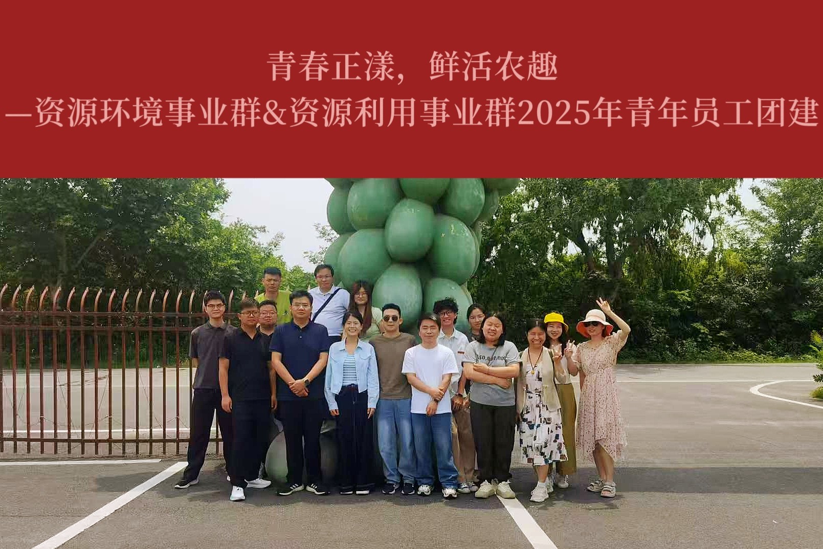 為激發(fā)青年員工活力,強(qiáng)化團(tuán)隊(duì)協(xié)作精神,2025年5月27日,資源環(huán)境事業(yè)群、資源利用事業(yè)群組織青年員工前往豐澤湖生態(tài)園,開展了一場主題為“青春正漾,鮮活農(nóng)趣”的精彩團(tuán)建活動,讓青春在歡聲笑語與田園風(fēng)光中盡情綻放。