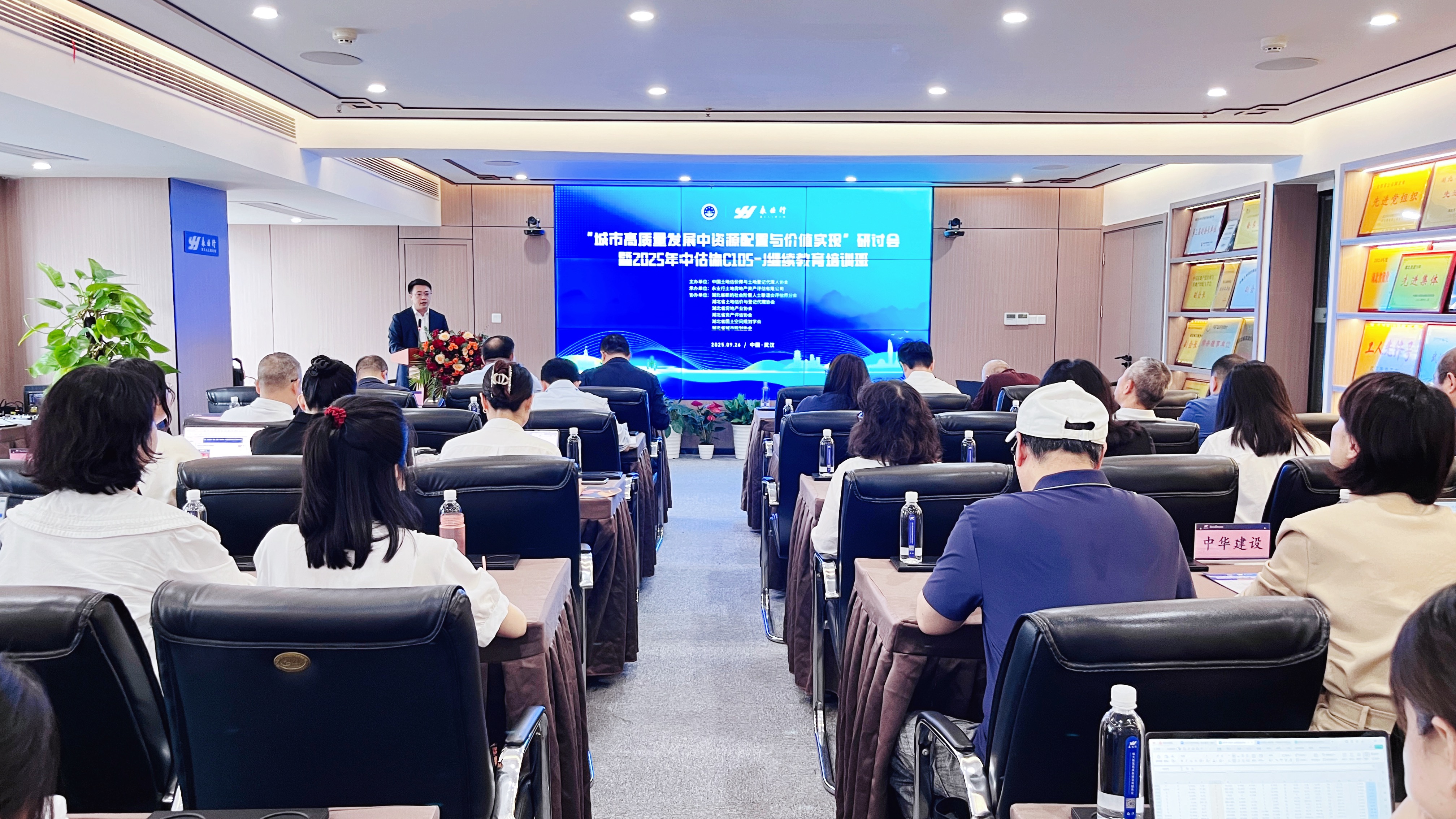 2025年9月26日,“城市高質(zhì)量發(fā)展中資源配置與價(jià)值實(shí)現(xiàn)”研討會(huì)暨2025年中估協(xié)C105-J繼續(xù)教育培訓(xùn)班于永業(yè)行舉辦。本次研討會(huì)由中國(guó)土地估價(jià)師與土地登記代理人協(xié)會(huì)主辦,湖北省新聯(lián)會(huì)評(píng)估師分會(huì)、湖北省土地估價(jià)與登記代理協(xié)會(huì)、湖北省資產(chǎn)評(píng)估協(xié)會(huì)、湖北省房地產(chǎn)業(yè)協(xié)會(huì)、湖北省國(guó)土空間規(guī)劃學(xué)會(huì)、湖北省城市規(guī)劃協(xié)會(huì)提供支持,永業(yè)行承辦。湖北省委統(tǒng)戰(zhàn)部副部長(zhǎng)江浩、湖北省自然資源廳二級(jí)巡視員陳平、湖北省國(guó)土空間規(guī)劃學(xué)會(huì)常務(wù)副理事長(zhǎng)余軍、中國(guó)土地估價(jià)師與土地登記代理人協(xié)會(huì)副秘書(shū)長(zhǎng)賈晟東、湖北省委統(tǒng)戰(zhàn)部新階層處處長(zhǎng)韓少斌、湖北省自然資源廳自然資源開(kāi)發(fā)利用處主任科員王倩、湖北省土地估價(jià)與登記代理協(xié)會(huì)秘書(shū)長(zhǎng)周曉鶯、湖北省資產(chǎn)評(píng)估協(xié)會(huì)副會(huì)長(zhǎng)兼秘書(shū)長(zhǎng)吳玉輝、湖北省房地產(chǎn)業(yè)協(xié)會(huì)副秘書(shū)長(zhǎng)范莉蒞臨會(huì)議指導(dǎo)。中國(guó)土地估價(jià)師與土地登記代理人協(xié)會(huì)副會(huì)長(zhǎng)、湖北省新聯(lián)會(huì)副會(huì)長(zhǎng)兼評(píng)估師分會(huì)會(huì)長(zhǎng)、永業(yè)行董事長(zhǎng)潘世炳致歡迎辭,永業(yè)行常務(wù)副總裁文云波主持會(huì)議。
