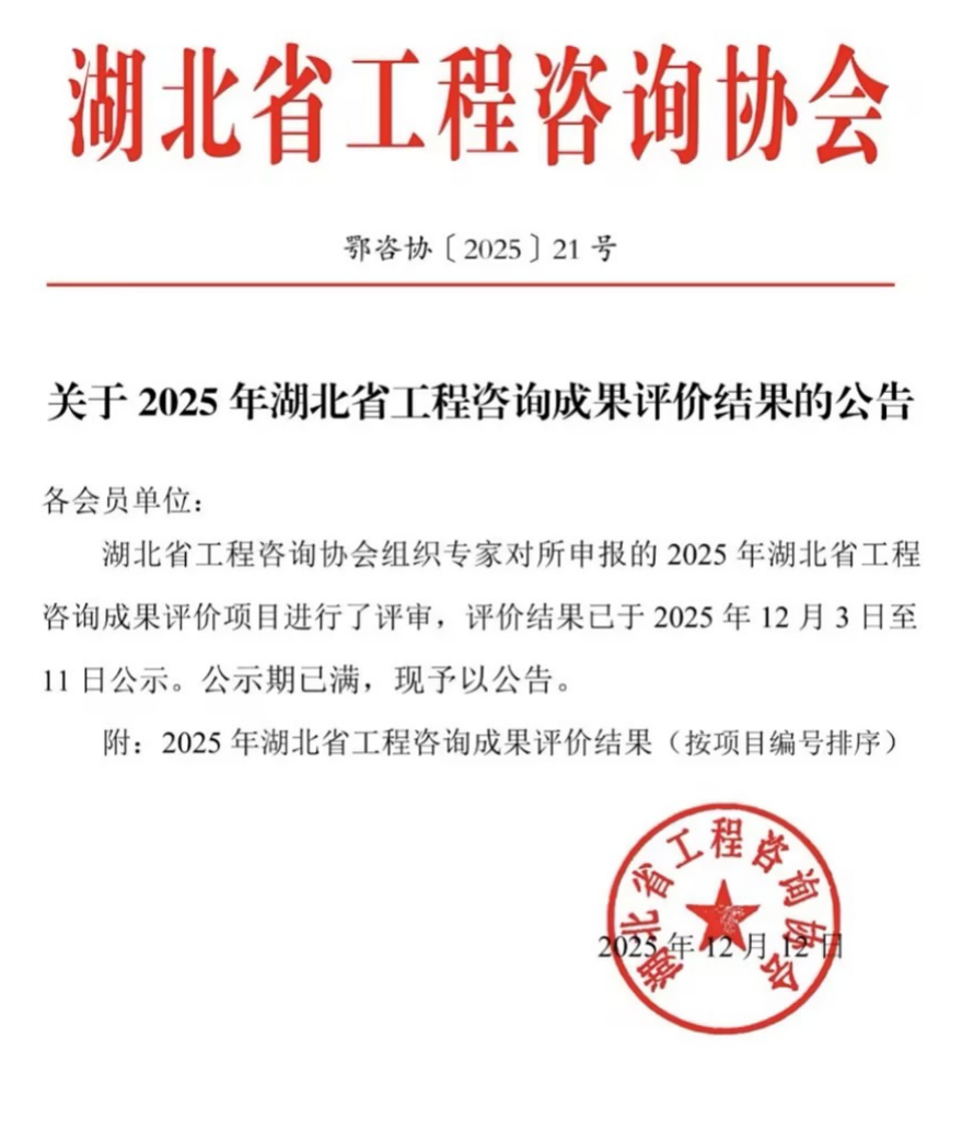 近日,湖北省工程咨詢協(xié)會發(fā)布2025年湖北省工程咨詢成果評價結(jié)果的公告,永業(yè)行憑借深厚的專業(yè)功底與創(chuàng)新的咨詢理念,共有6項成果獲得優(yōu)秀評價。